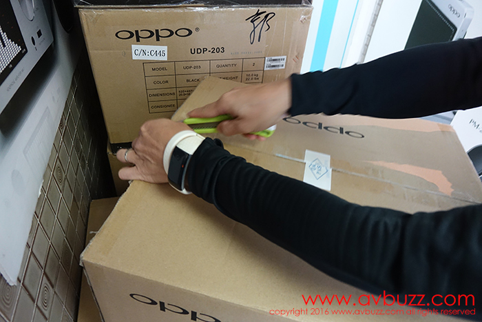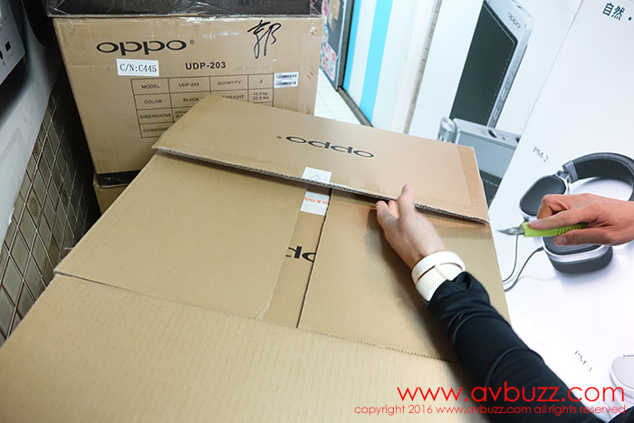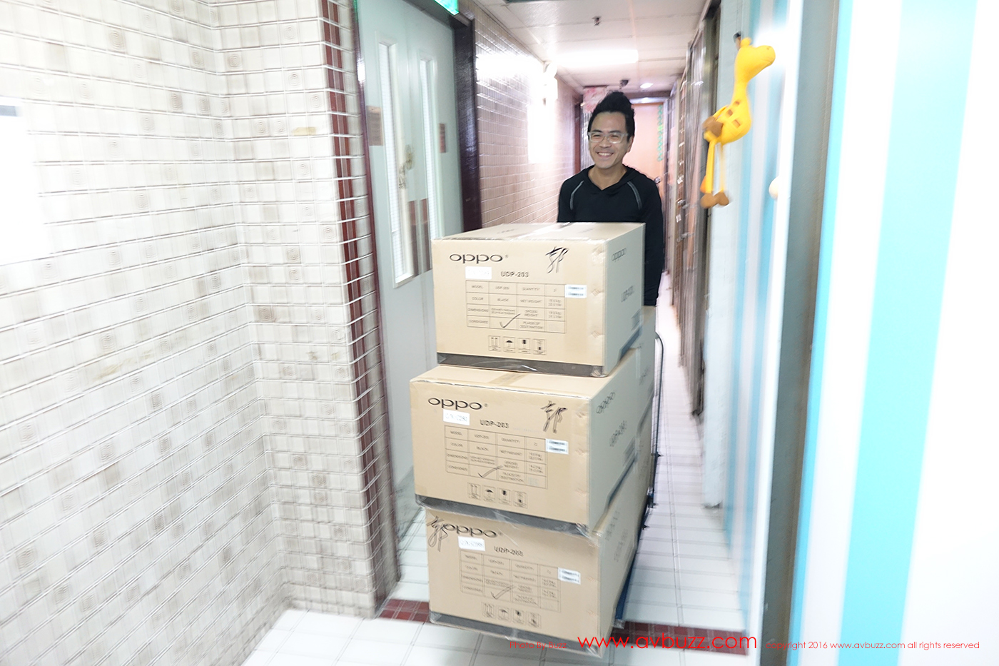 2016年12月19日,距離平安夜還有五天的星期一早上,聲耀全音店長 Nipon Kwok 接到通知,是日中午,首批 OPPO UDP-203 會來到聲耀全音,所以他要比平日早出門口,趕回店鋪收貨。也代表著早前開出 聖誕前一定有貨取 期票對現。對於2016年便可買到2017年產品的我來講,心情當然又興奮又緊張吧,最重要係我唔再需要用樣辦機,而且首批只得20部,顯得更珍貴,想追貨? 出年啦 ^^。有機取當然第一時間飛撲去。首批20部 UDP-203,搶灘到達旺角聲耀全音陳列室。但我來遲一步,貨車放下這批貨,早放上手推車,錯過卸貨的一刻。