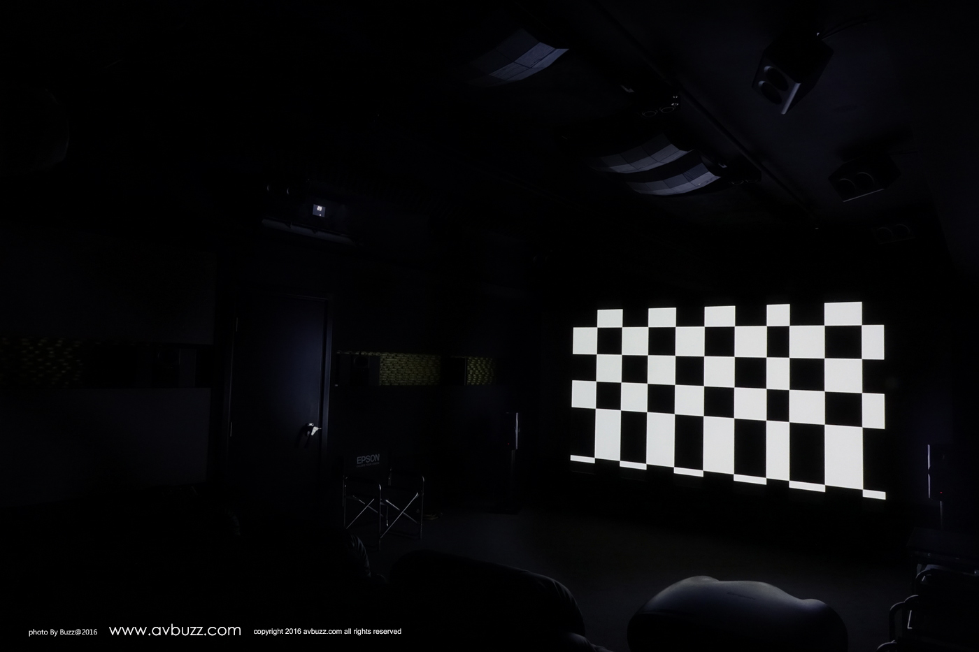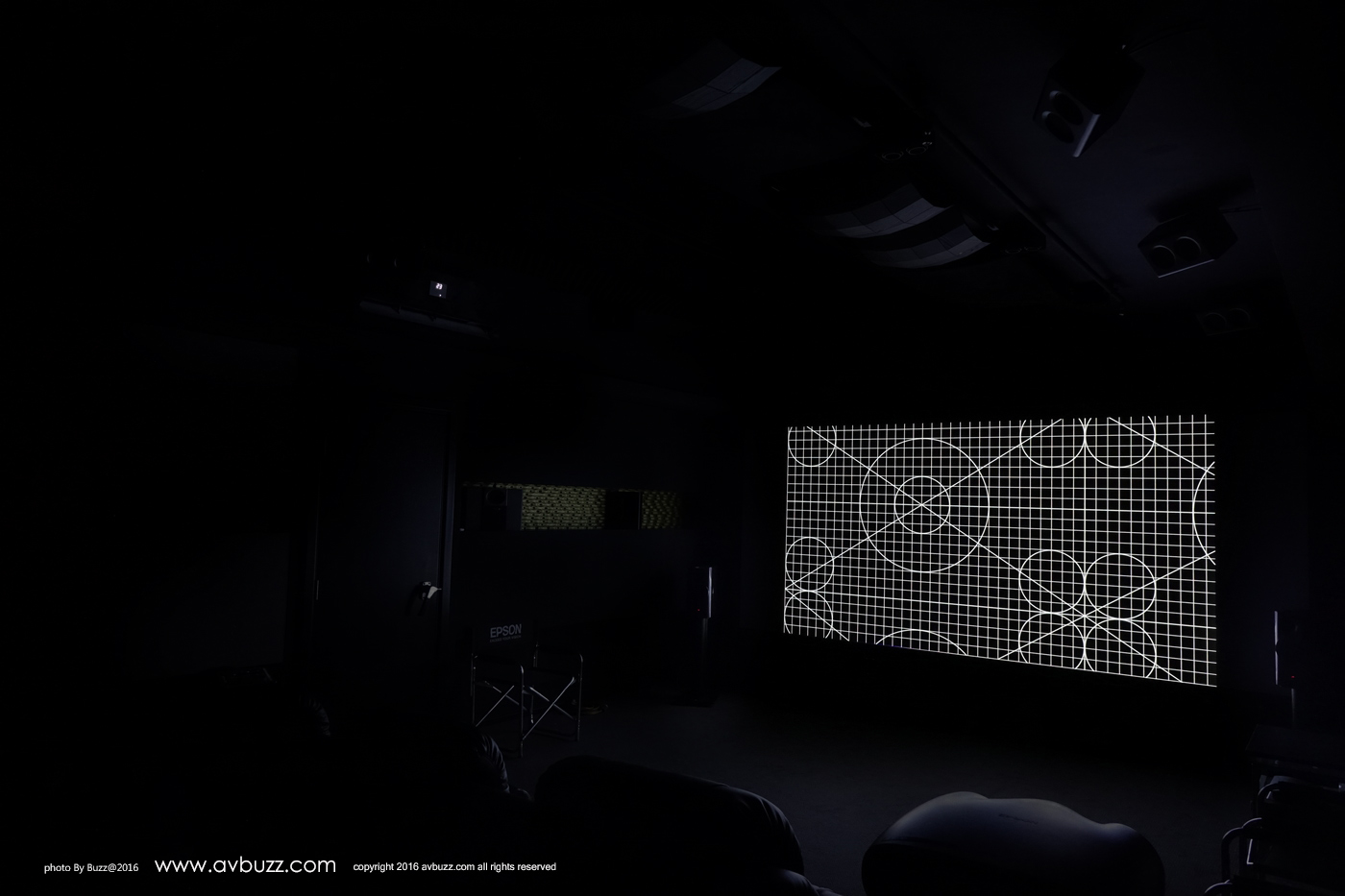 投影幕方面選用英國品牌 VISIONE Cine One THX 170″ 2.35:1 編織透聲固定幕,增益為 0.95。
