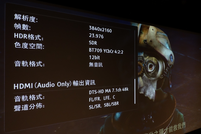 發佈會當日為大家安排的軟件包括 4K 示範影片檔案, 也有2K 轉4K 的片段,還有 UHD 4K 藍光碟作示範。 UHD 4K 藍光碟方面,現場為大家帶來 PACIFIC RIM (悍戰太平洋 ) 。