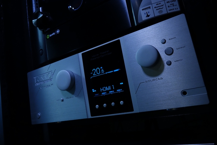 配合示範器材組合還有 Trinnov Audio Altitude 32 AV 解碼,Procella Audio 後級分頻器與其系列喇叭所組成的15.2.10 環繞聲系統。