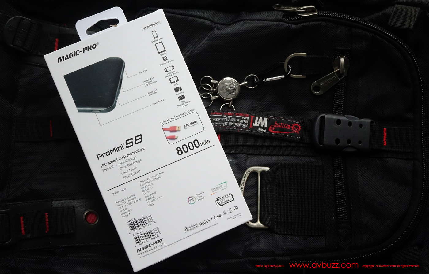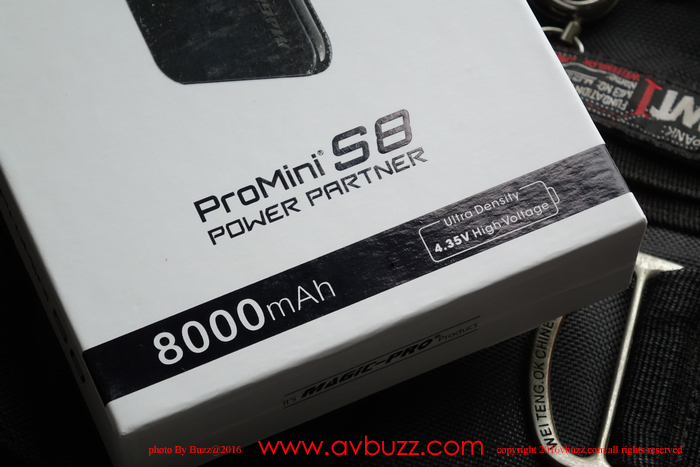 Magic-Pro 最新推出的 ProMini S8 賣點係輕身,纖巧,時尚,而且有USB 盲插設計,電池方面採用 4.35V 8000mAh,實物握上,四個字形容,愛不釋手,莫講自用,借比朋友用來救命的時候都覺得有品味。而且仲可以同朋友講,係上帝叫我買的 ,係咪好型呢^0^ 。無拿過上有真係好難形容比人知個心感係點,對於容量為 8000mAh的流動充電器來講, 150g 有幾輕唔重要,最緊要我自己喜歡就得,送比人家做禮物,實用得來又貼心,無得輸,每個 $248港元。三個顏色選擇,我當然要襯返我部手機的黑色吧。Magic-Pro 最新推出的 ProMini S8 黑色的包裝是如圖所見,包裝盒好硬淨,簡約黑白色,很討好。