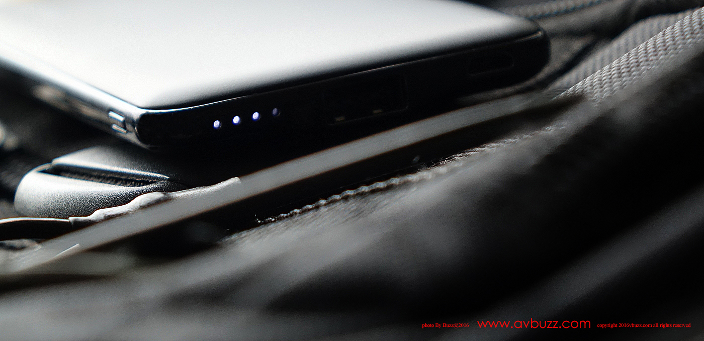 ProMini S8 輸入為 micro usb ,提供 5V / 2A ,假設 ProMini S8 是 8000 mAh 空肚的話,喂飽佢約需6個小時。圖中所見,最左手邊位置有四個孔,這是 LED 電量顯示燈位,代表顯示分為四級。
