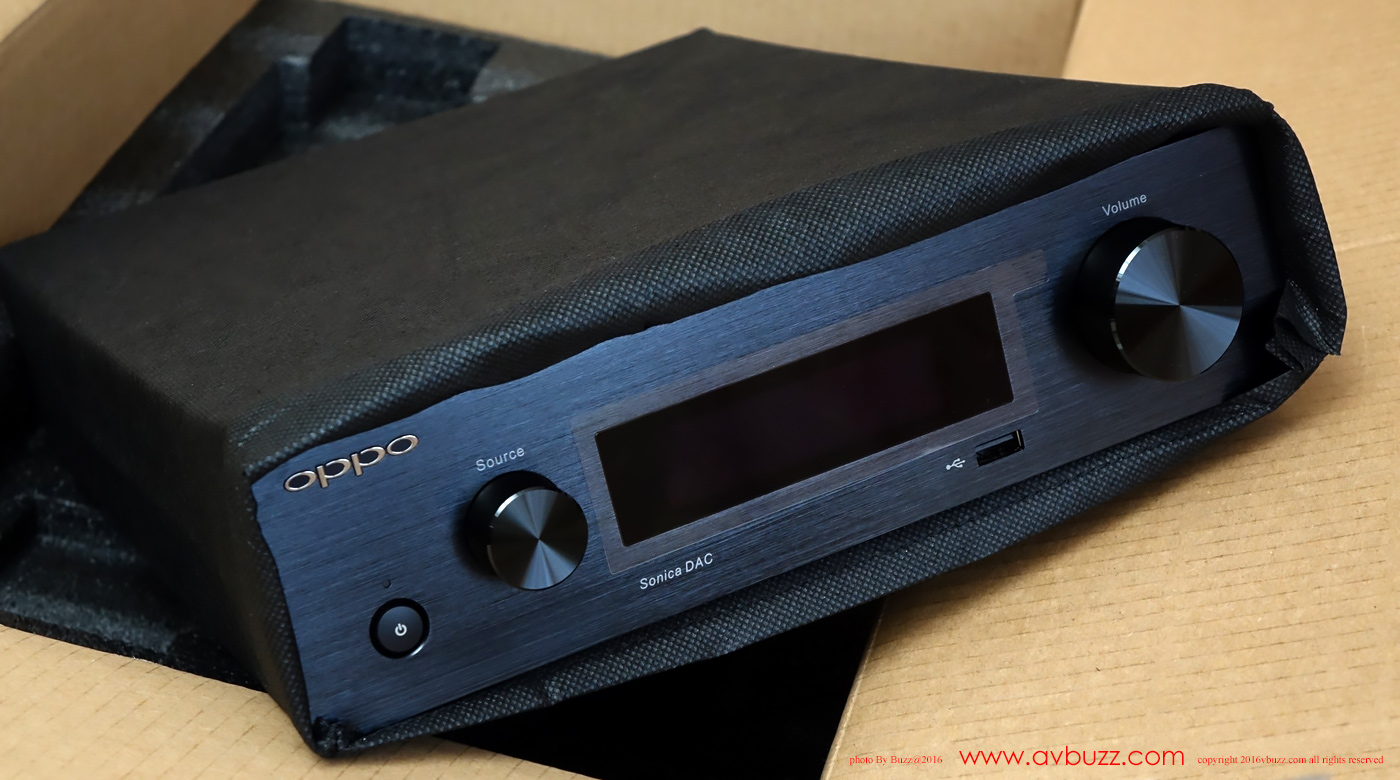 移走環條袋後,可見這部屬於半闊機的 Sonica DAC ,可見到跟OPPO 藍光機一樣貼上保護貼在屏幕上,而且款式也是同樣。