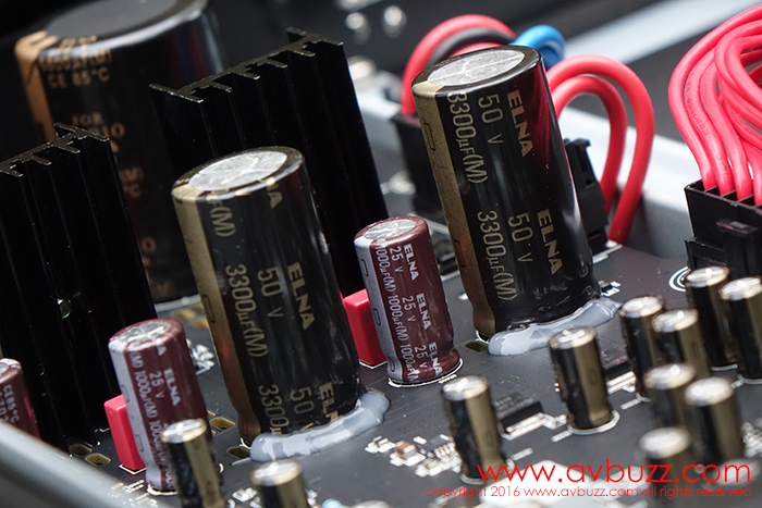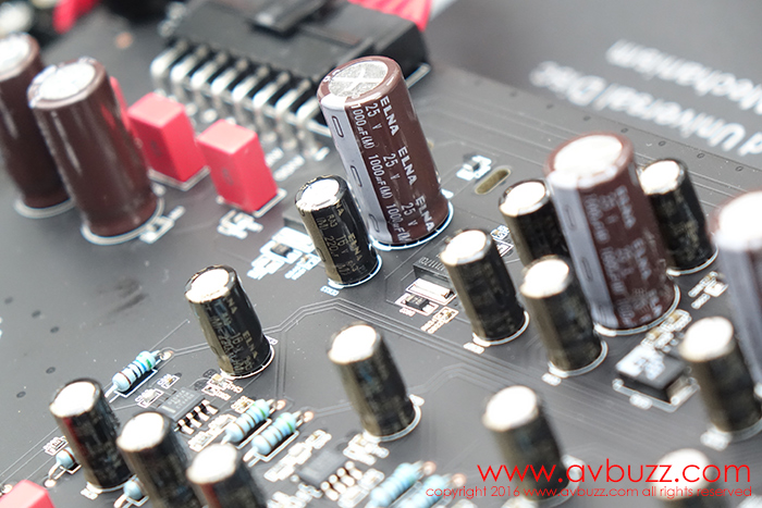 UDP-205體內電容大部份用上大家熟識的 ELNA 品牌,級數也絕不低,在這個電源供應位置,同樣是用上了ELNA 電容。