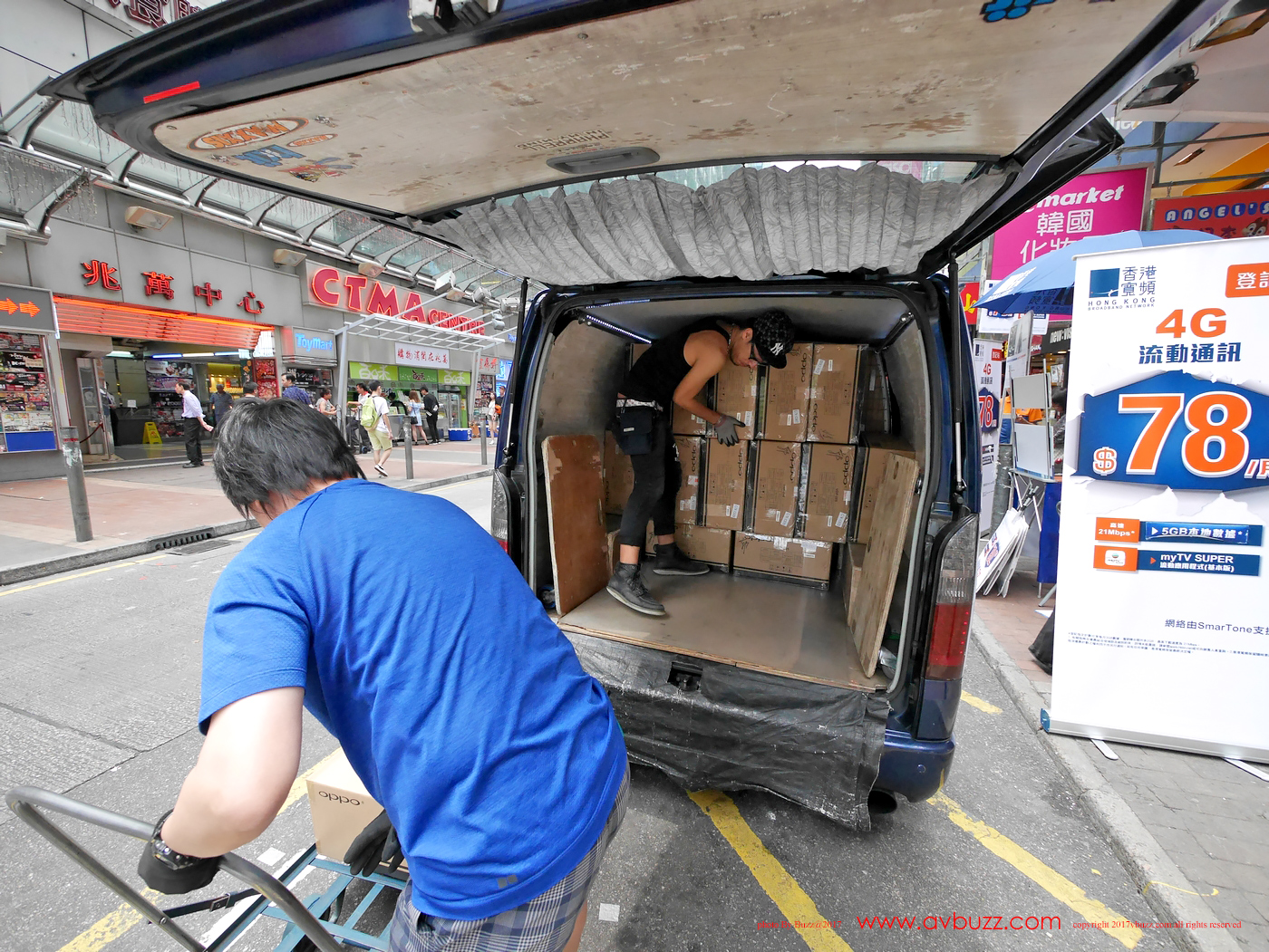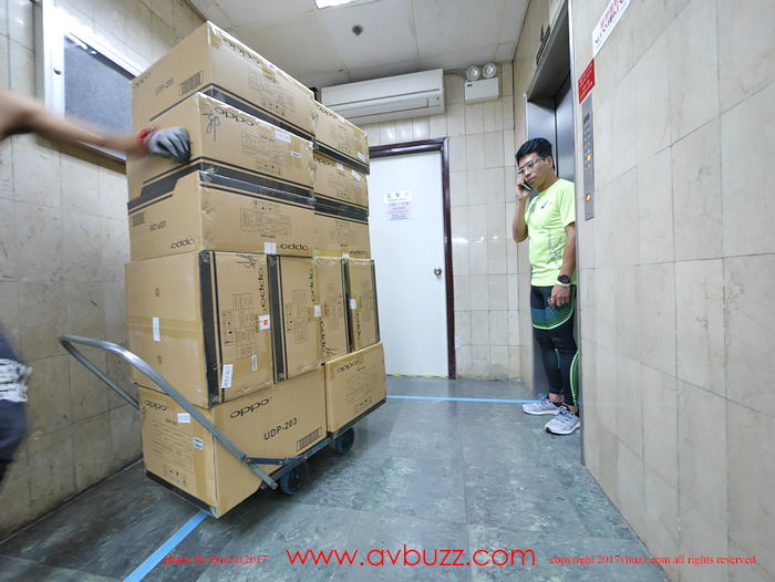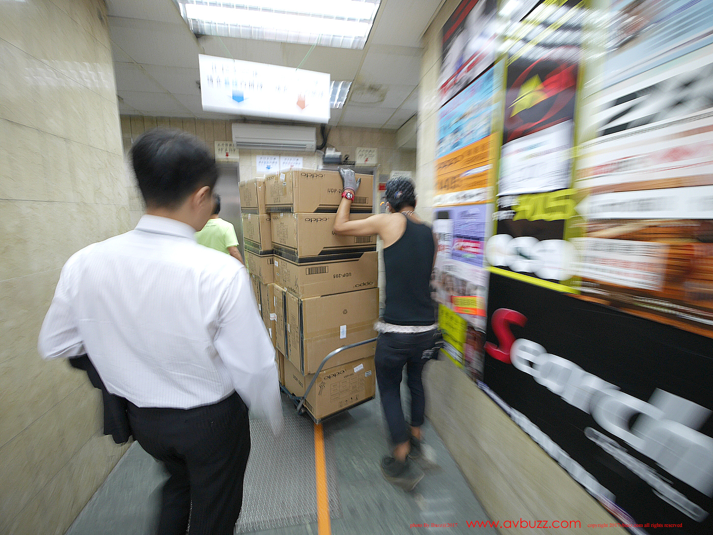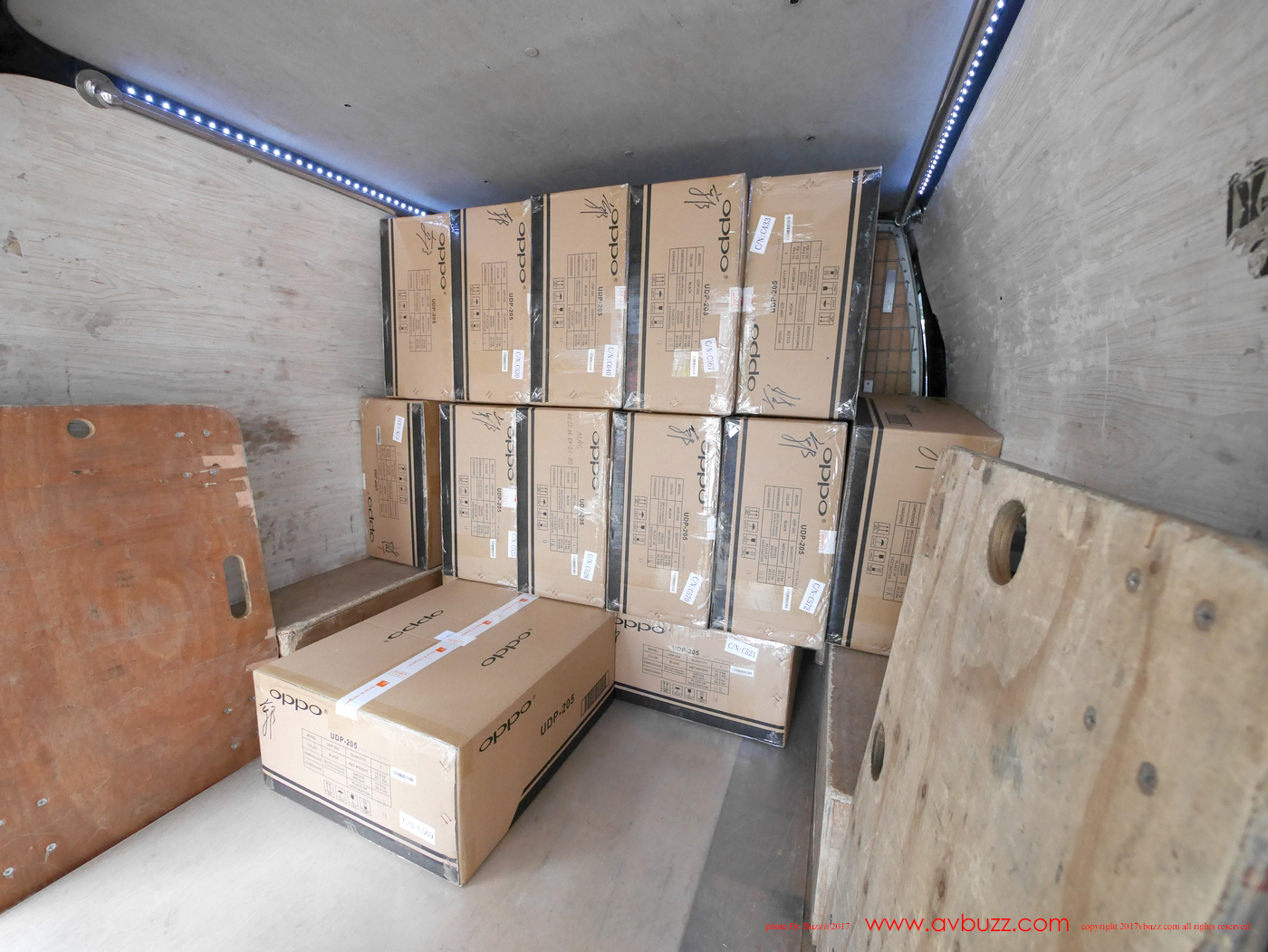 5月15日星期一,對聲耀全音BO Acoustic來講是一個重大日子,因為這日是他們所代理的 OPPO 品牌,旗艦新型號 UDP-205 正式發售日。首批到貨數量並不多,一部貨 Van 分兩轉鐵車仔就可完成運送。落貨當日中午非繁忙時段到貨。負責運輸的朋友來到旺角陳列室對面馬路落貨。