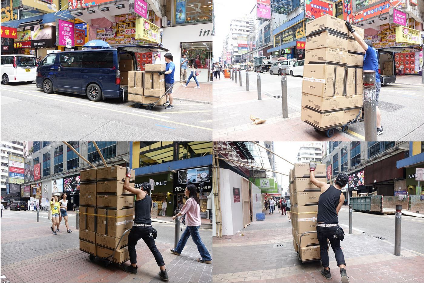 5月15日星期一,對聲耀全音BO Acoustic來講是一個重大日子,因為這日是他們所代理的 OPPO 品牌,旗艦新型號 UDP-205 正式發售日。首批到貨數量並不多,一部貨 Van 分兩轉鐵車仔就可完成運送。落貨當日中午非繁忙時段到貨。負責運輸的朋友來到旺角陳列室對面馬路落貨。