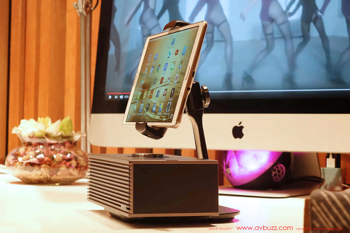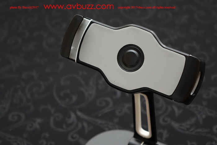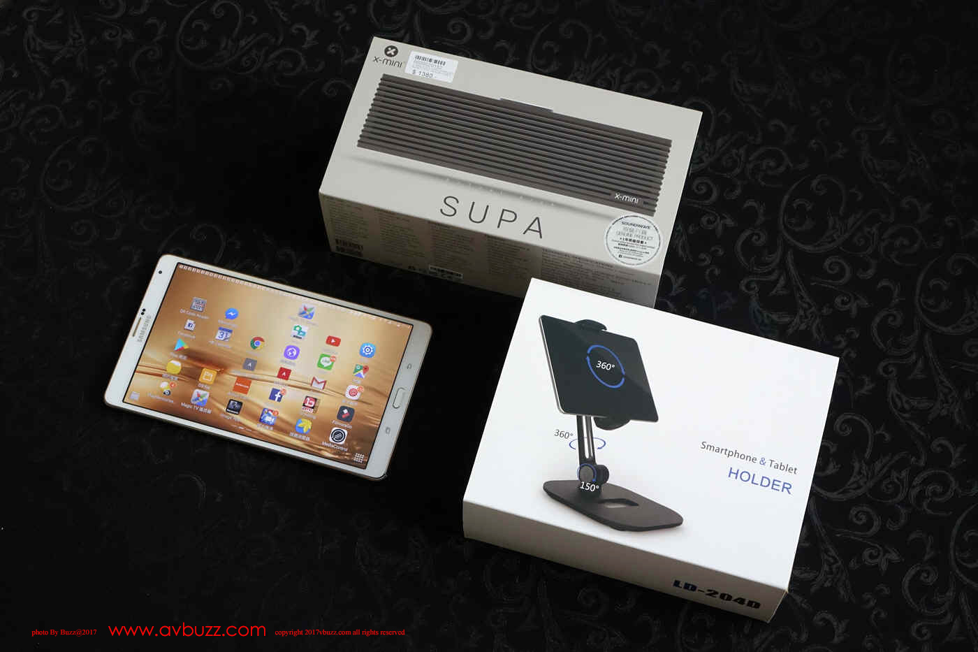 哈~~~她剛好和我一直用開的 SAMSUNG Tab S 8.4 一樣闊度,很順眼啊,而且露出來的彈力夾子我不反感,彈力適中,不需要跟她鬥力先夾得好。最重要係平版被夾在喇叭之上,不會被擋著,我正式收回上述提到覺得這機座醜的評價。