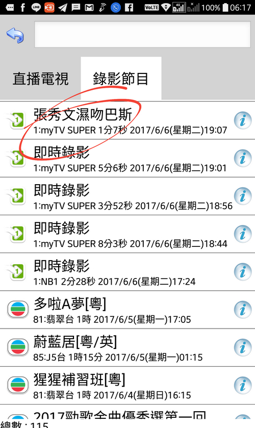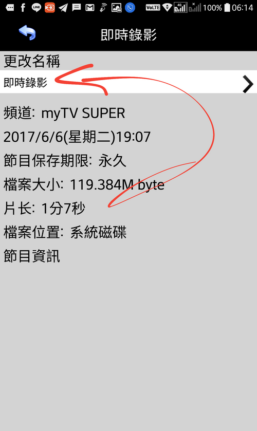 下圖所見,原本名為預設 即時錄影 名稱,可透過 Magic TV Streaming app 來修正自己喜歡的節目名稱。
