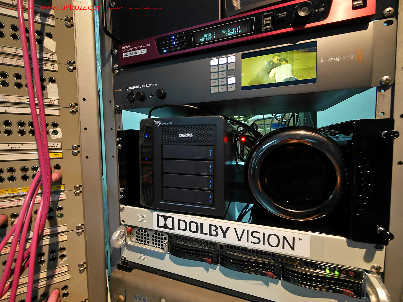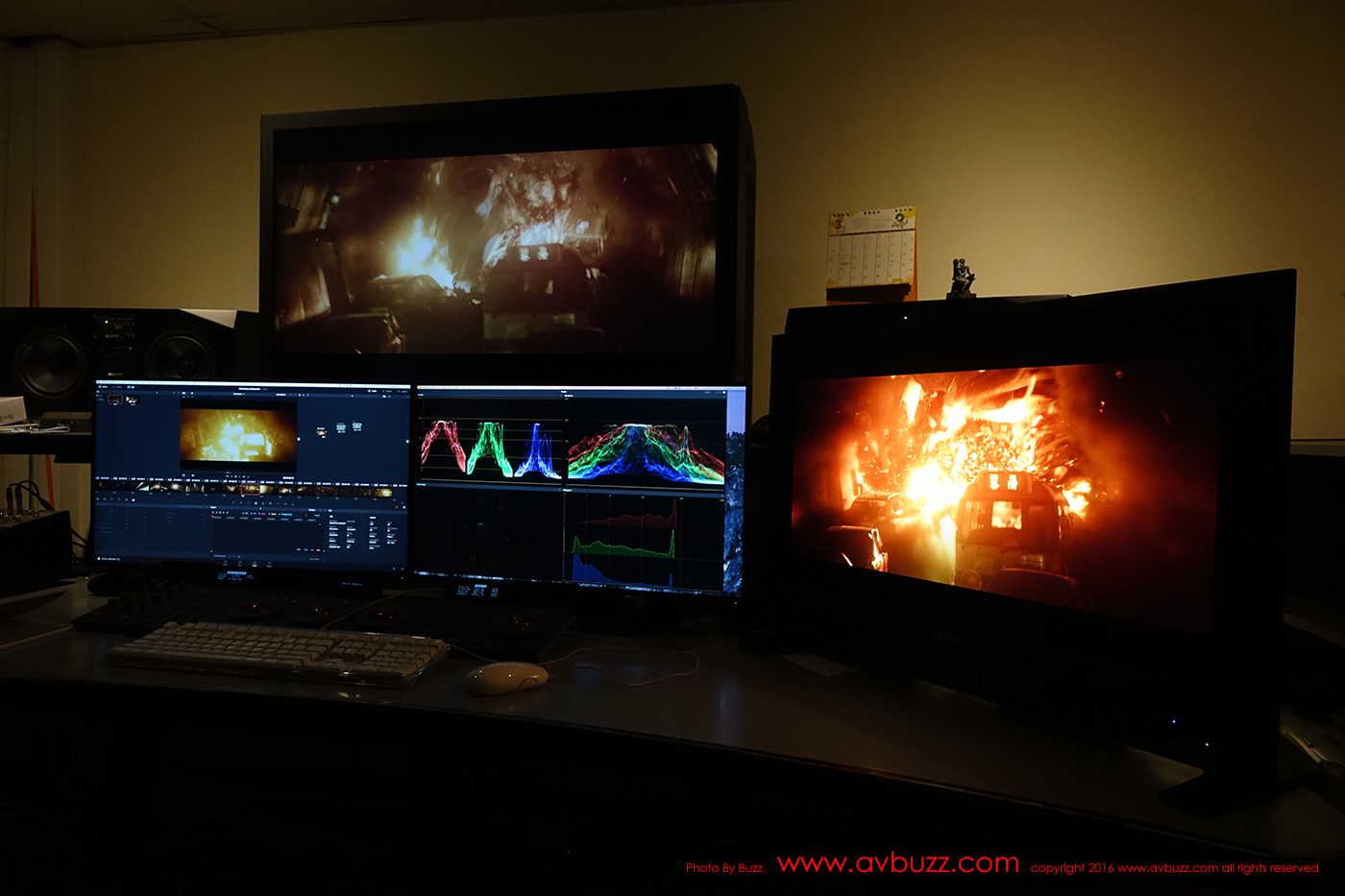 經調色處理後,影像再來到圖中所見,屬於 DOLBY VISION 電腦,也是處理 HDR 與 DOLBY VISION 必需要的器材之一,擁有這器材,技術人員首先要經過受訓,並考獲資格,杜比實驗室方會出售這器材到裝作公司,正如上述提到,整個亞洲區,就只有 嘉耀製作有限公司 有這個資格,在操作房間顯示屏所見畫面,就是來自這裡。