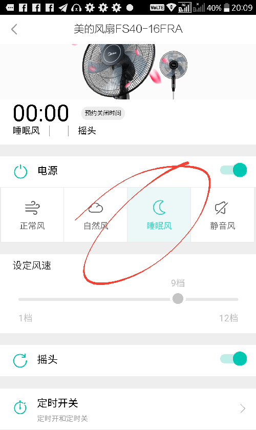 而且這個操作介面有顯示出風扇正處於什麼狀態,如圖所見,用家根本無需要見到風扇,也非常清楚了解風扇現在處於什麼狀態,以下圖為例,風力正處於第9檔,而且被設定在不搖頭狀態,要改變的話,只需按下面的鍵就可以了, 咁多野玩一把風扇,連運費 $414 港元就擁有,你話開心唔開心先。