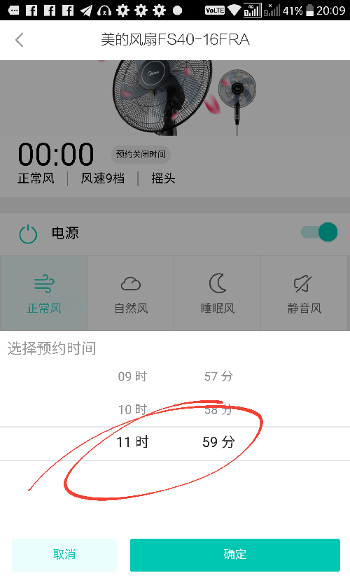 非常好用的預約開機功能,假設在超市排隊比錢中,心知一陣結賬後會無手開app,於是如下圖所見,風扇處於關機狀態下,預設6分鐘後自動開風扇,到時身水身汗的我回到家,便有涼風等著我了,而這預約功能最大為12小時。