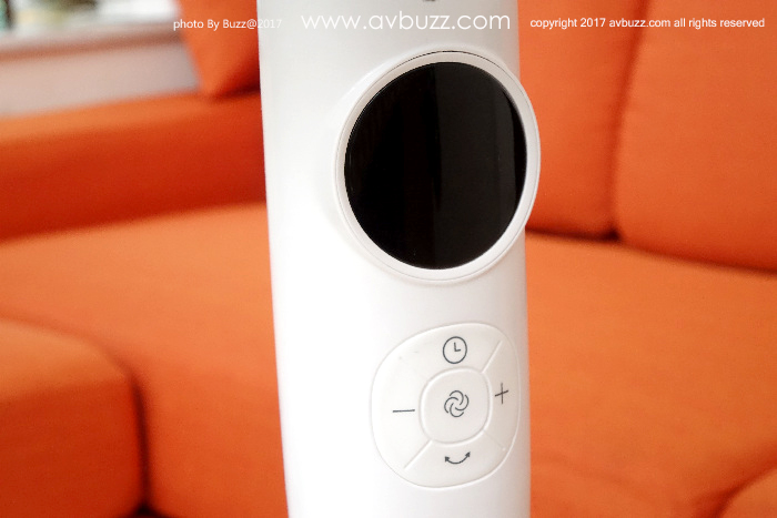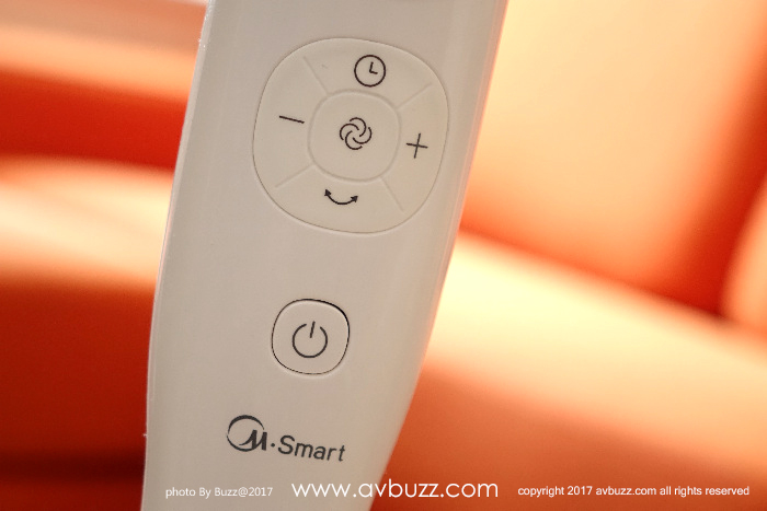 這風扇可透過三款不同方式操作,如圖所見,透過直接按風扇身上操作鍵又得,用跟機來的遙控又得,而且風扇無論使用遙控,或按機身鍵,當風扇接收到指令時,會發出必一聲,代表收到主人指令,非常貼心和討好。最重要是兩種方式的反應都是即時達到目的,並沒有延遲之感。而紅外線遙控的接收角度一般合格,當然太斜的話便會有接收困難,如果身處面積細的地方,依靠反射也有機會接收到的。而接收距離的話,我走到相距 4.2 米外的無障礙距離是極限開始,不過實際使用我可不會把風扇放到咁遠來使用。