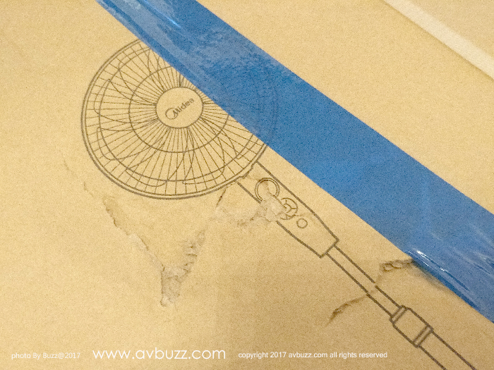 雖然話 $379 港元買到,但未計算透過集運來港價錢,這風扇重量為 6.3 KG,集運收取 $35 港元運輸費,即係埋單是 $379+ $35 = $414 港元。收貨時見到箱子有所損傷,希望無傷到內部,其實也難怪,因為這個紙箱很單薄,不是很硬身的設計。