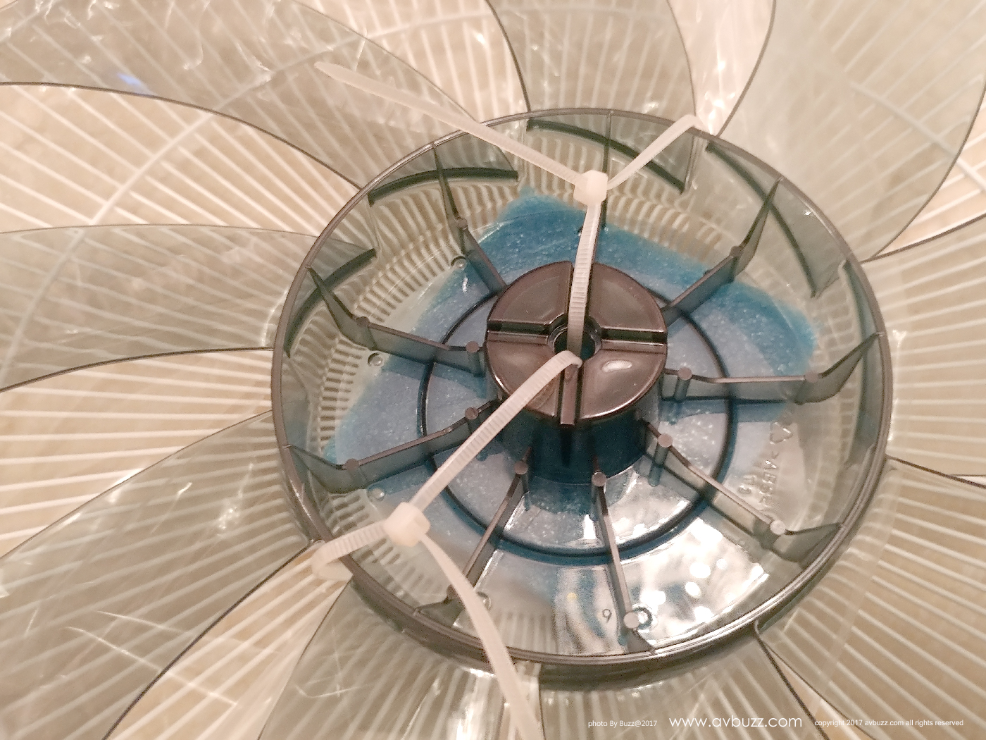 前網罩底部不但有安全扣,而且備有保險鏍絲,確保扇葉不會像血滴子飛出,什麼是血滴子?咳咳……..忘記吧。或者你可理解為,不會發生死神來了式意外,咁你會易明白D,哈哈哈哈……..。上述提到過組裝過程無需任何工具,但來到呢粒保險鏍絲,就需要工具了。