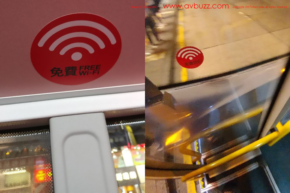 九巴推出免費 Wi-Fi 有一段日子,時運一向低的我,上星期先有雞會碰到,在無心理準備之下,狼狽拍下登車一刻,位於車頭的標貼,在車廂同樣貼有相同貼紙。
