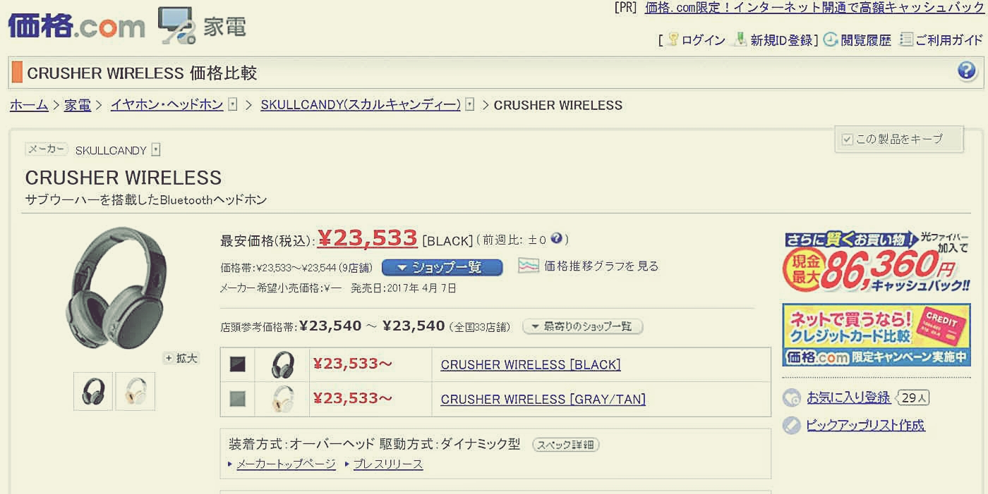 原來這耳機用來看影片是很利害啊,就地正法在 e-earphone 購買 Skullcandy CRUSHER WIRELESS 藍牙耳機是 21180円。