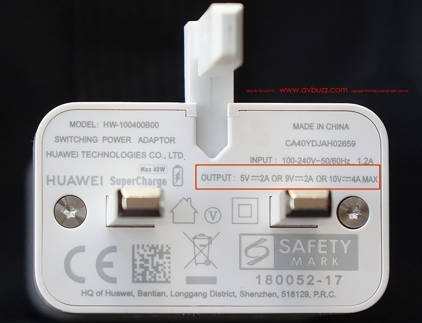 雖然 Mate 20 Pro 無線充電餵人食係龜速,但自己以無線方式充電為 15W,以無線充電來講算快充。 Mate 20 Pro 內置 4200 mAh 電池,自己為自己充電的話,她擁有超高速充電功能,如空肚餵飼 4200 mAh 電池,大約需1小時前後餵飽,如趕時間,30分鐘也可達七成飽。點解充得咁快? 因提供 40W 快充功能,下圖所見,跟機提供的火牛能提供最大 10V 4A輸出。