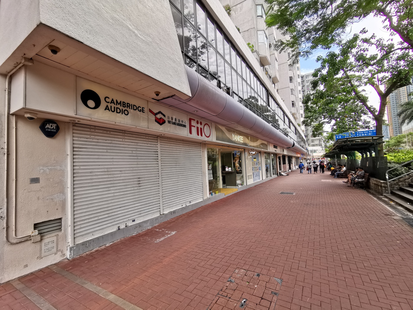 下圖所見是日聲影音中心門外,這時天色不太好,簷篷底部比較暗。