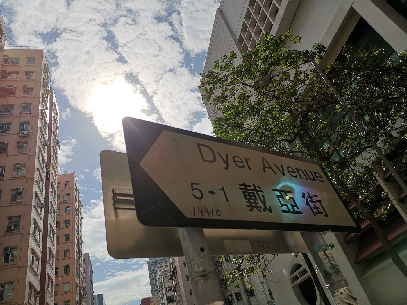 接下來這是一張逆光拍攝的環境,當時光得好利害,基本上我是盲拍,猛烈太陽光直接投到 mate 20 pro 機身和鏡頭,由機身反射出來的彩光,投到路牌亞字去,就知有猛烈,就算處於咁惡劣環境下,成像後除了太陽中心位外,其他雲細節清楚之餘,路牌也不會被影響而變暗,效果同樣清晰。