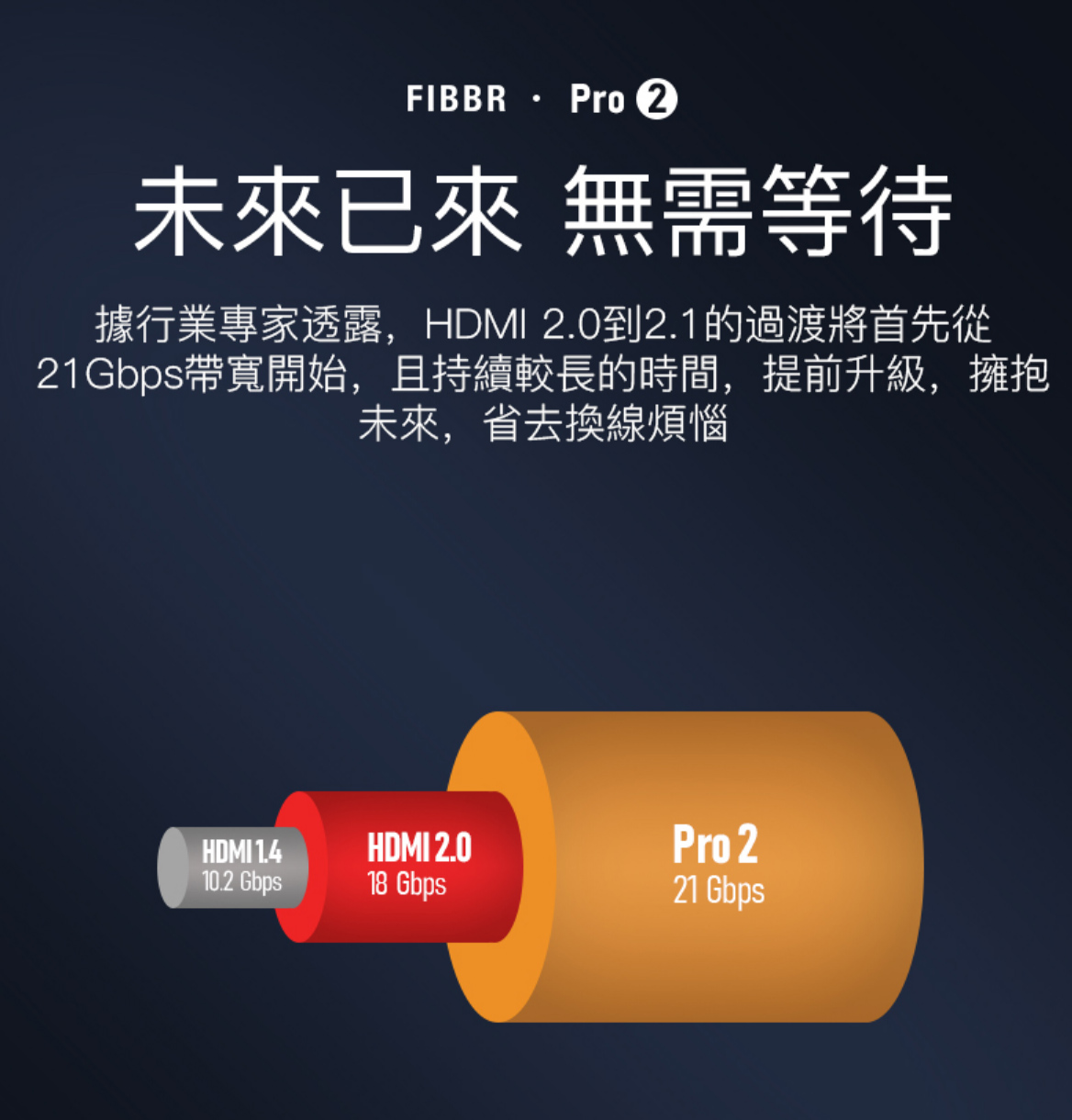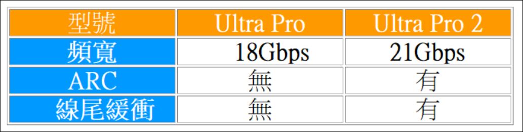 FIBBR 即將在市場推出傳輸頻寬達 21Gbps ,並帶有 ARC 功能,名為 Ultra Pro 2 HDMI 光纖線,透過圖表可大約對新舊兩代在規格上不同之處,有初步了解。
