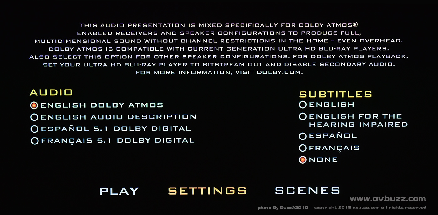 這碟提供 object based ( 物件導向) Dolby Atmos 聲軌,環繞聲效果我滿意,尤其幾幕直昇機上空效果我是收貨的,但金屬質感未能吸引我,大動態爆炸聲效也未能討好我。
