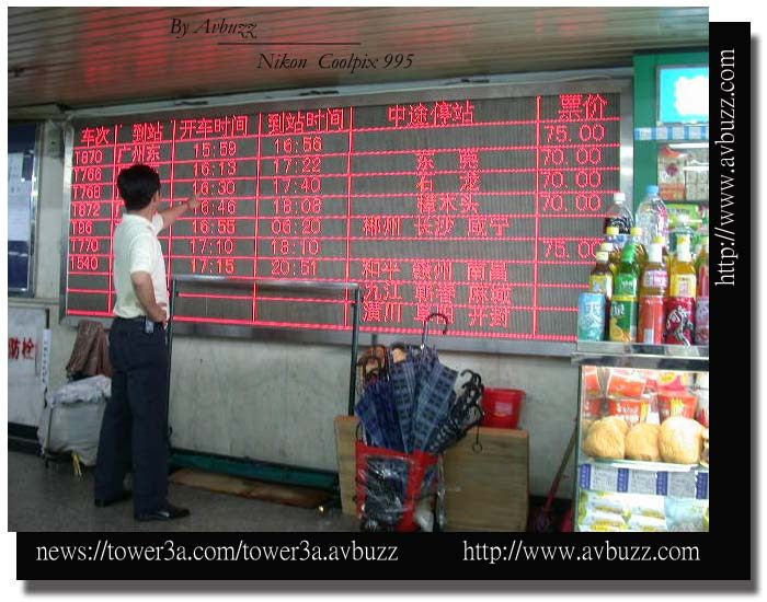 進入火車站內,見到電子告示版上面,顯示住廣洲的班次,原來每半小時一班,
