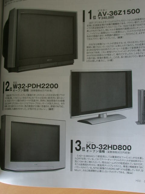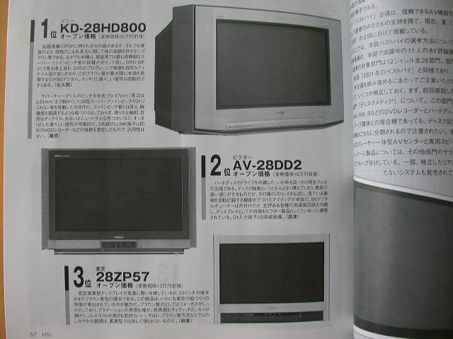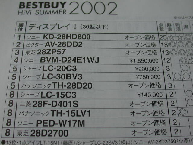 這個2002夏季的季選當中,30"以下的日版電視機,售價25萬日元的Sony KD-28HD800取得第一位。