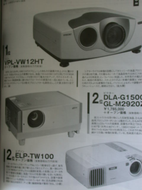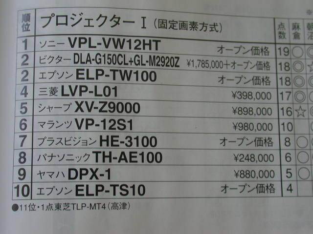 而第三位是售價50萬日元的EpSon ELP-TW100得到。