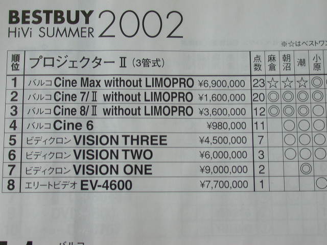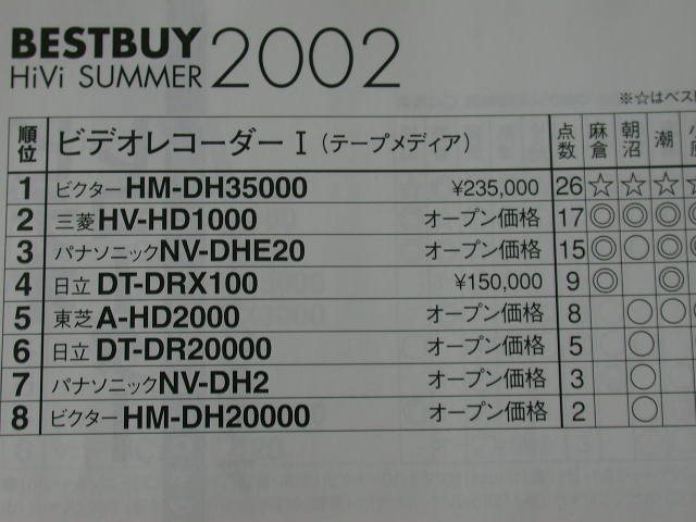 第二位是由三菱HV-HD1000得到,價位是八萬日元。