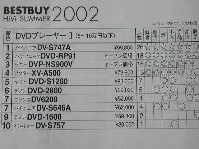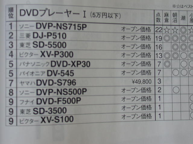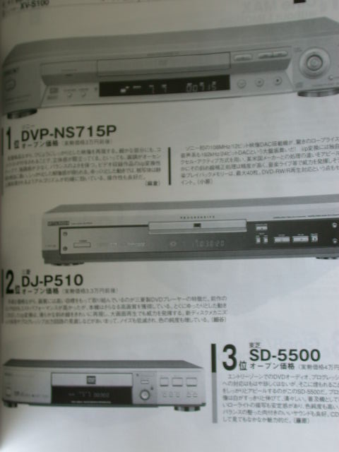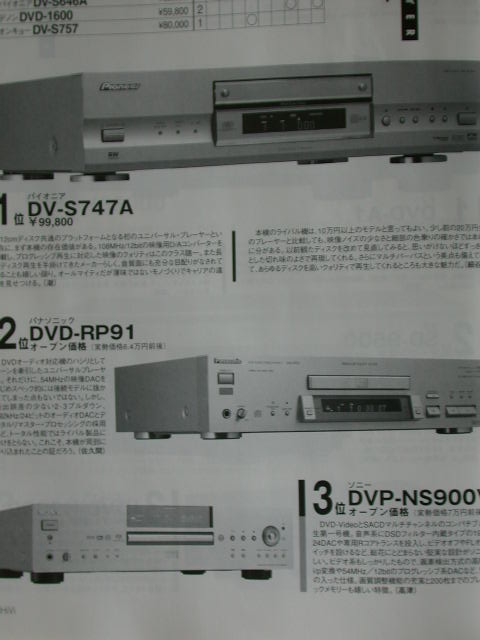 售價為七萬日元的Sony DVP-NS900V得到第三名。