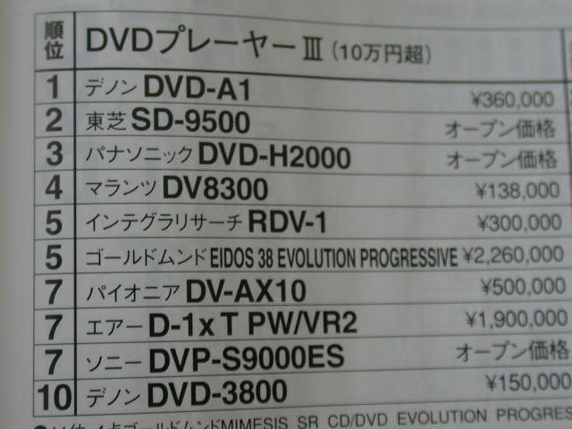 第一位是天龍頂級型號 DVD-A1,售價36萬日元。
