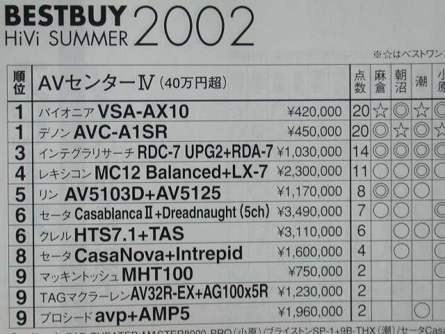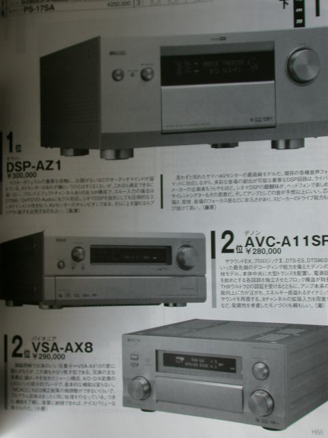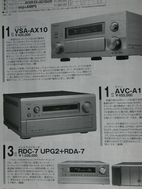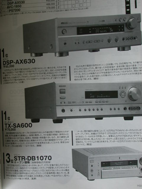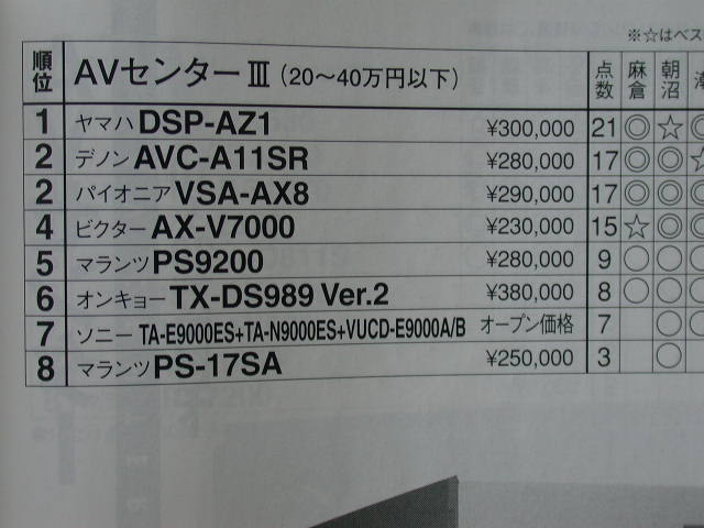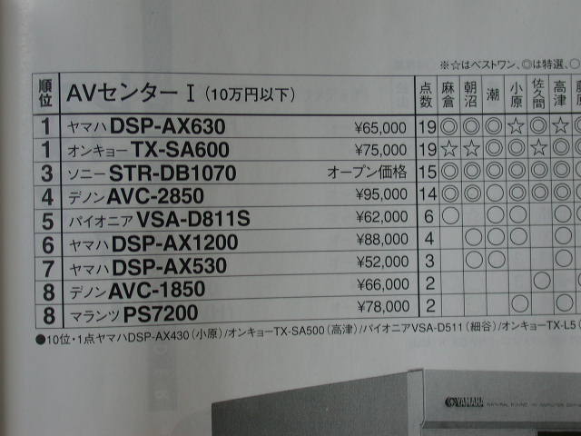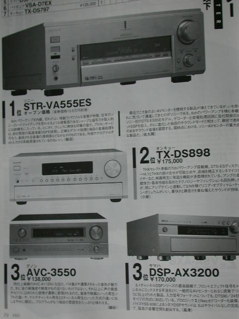 第三名由售價13萬8千日元的天龍AVC-3550和售價17萬日元的Yamaha DSP-AX3200瓜分。