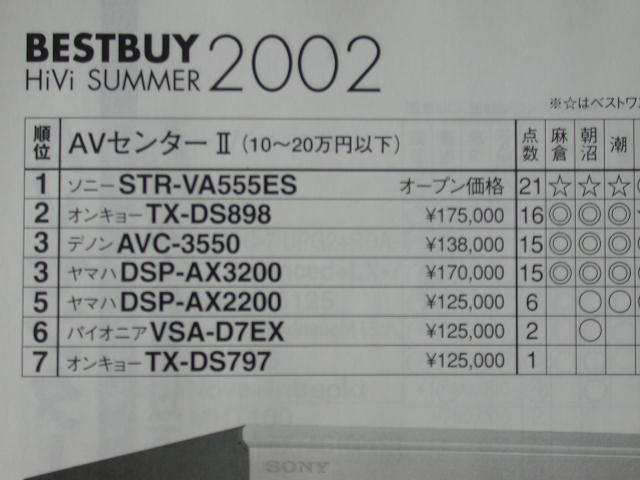 售價13萬五千日元的Sony STR-VA555ES得第一名。