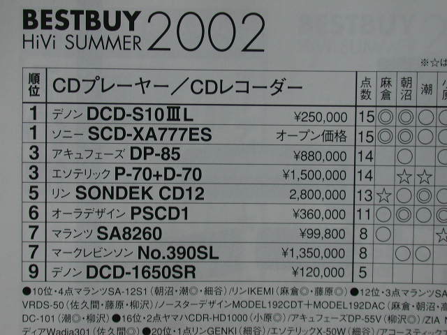 天龍DCD-S10 III L得第一。