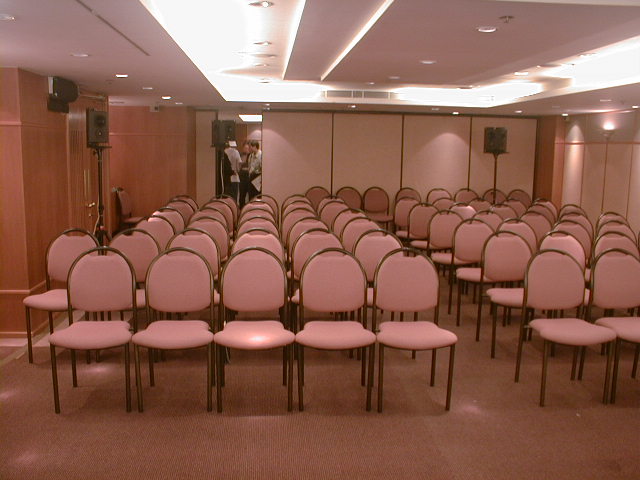 企返轉面是會場背面的觀眾席和後置喇叭。