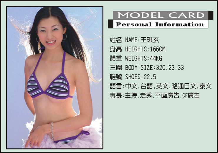 圖為今次和我們一起遊台灣的台灣Model (Serena)的個人資料。