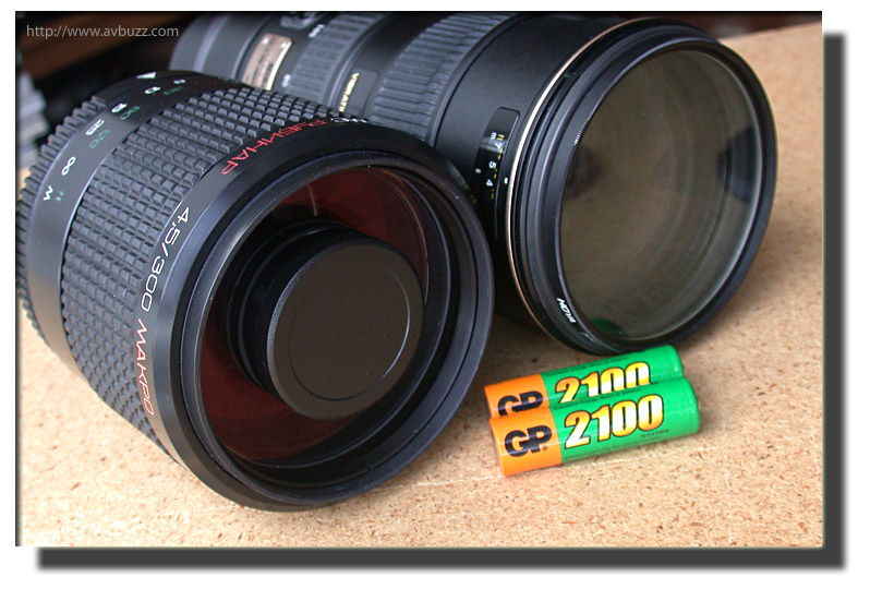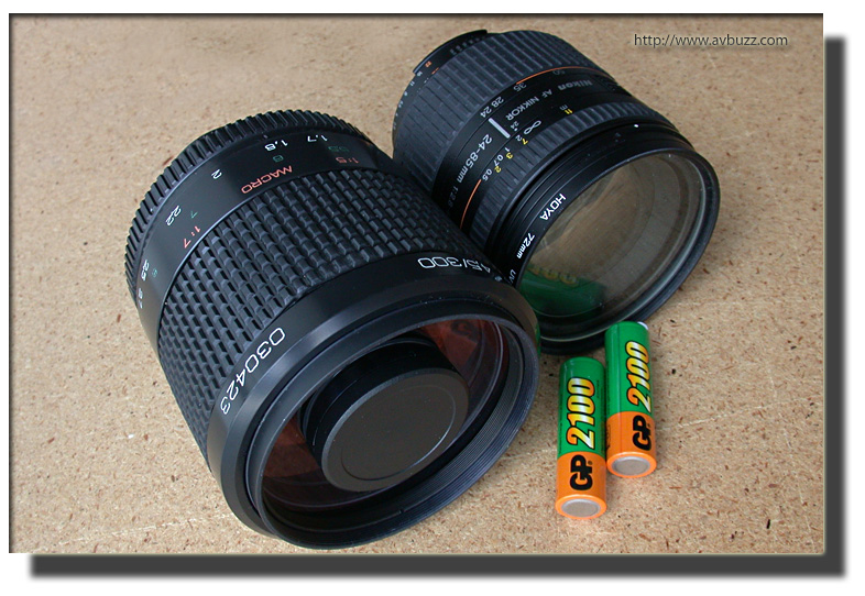 圖中左手面為蘇聯的平價 300MM反射鏡頭,右手面為普通 24- 85MM口俓鏡頭,需然前者直徑效大,