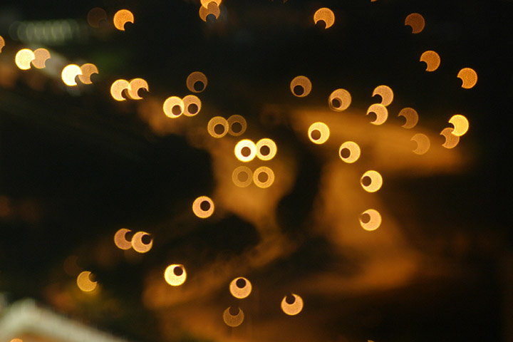 只要向著一些部份反光的背景,就可以做出類似圖中的圈圈效果,光線越充足,背景越雜亂,效果越明顯。