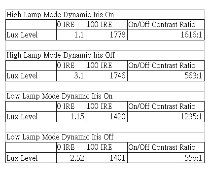雖然動態光圈能使AE700獲得1600:1的對比率,打破LCD以前的記錄及追近DLP在這方面的表現。