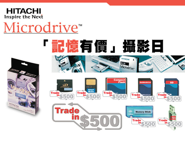 用家手上舊有的任何格式或牌子 8M以上的記憶咭 + $1099 = 2GB Microdrive