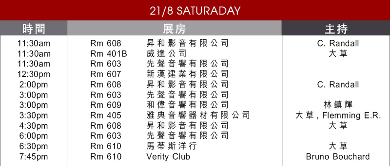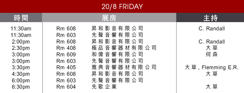每次音響展,其中一個最吸引人的是邀請嘉賓來臨會場,但一般發燒友都不知到確實房間和時間,住住都錯失了大好機會。